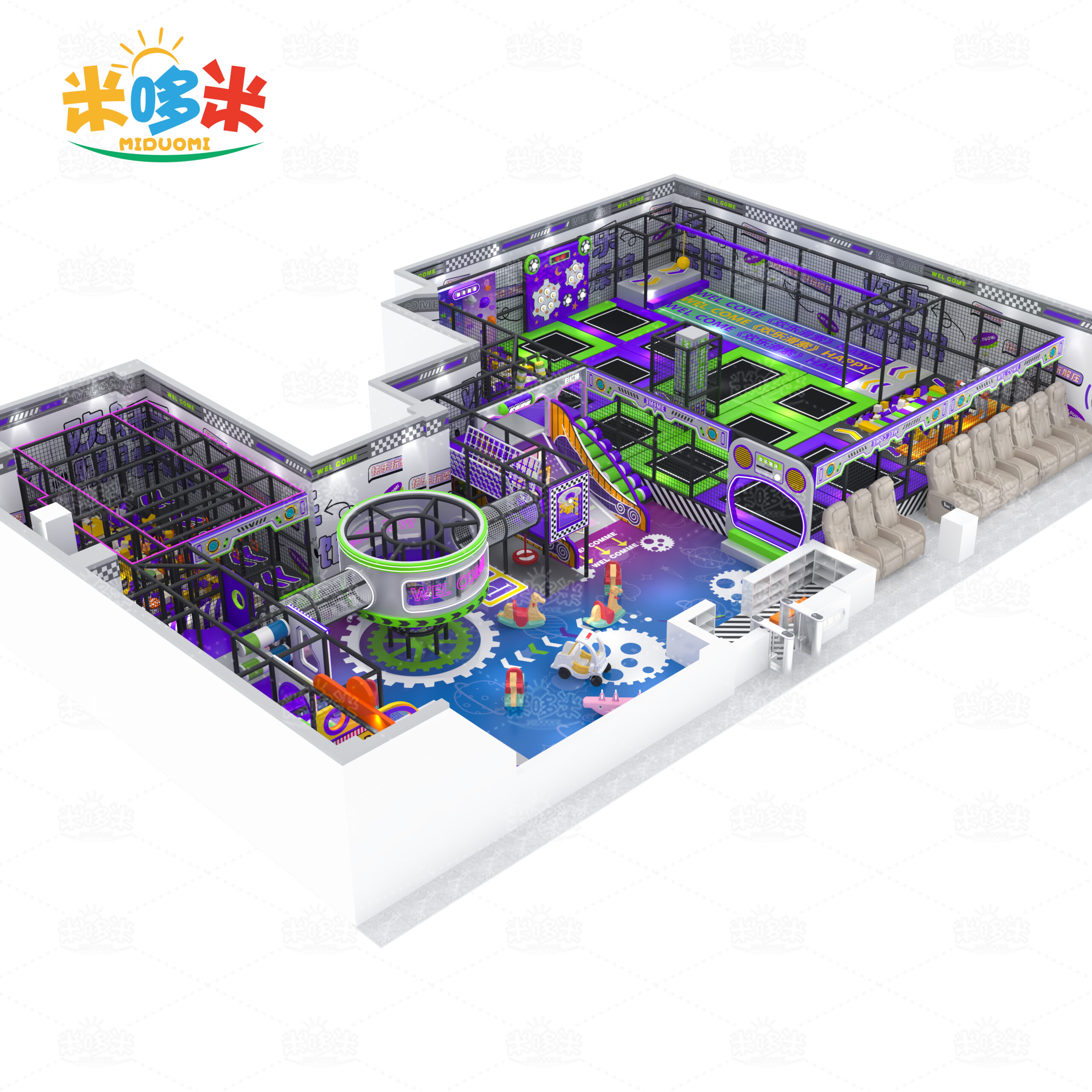 and trampolines, aiming to inspire children’s imagination and creativity. MiDuoMi indoor playground is suitable for amusement parks, kindergartens,